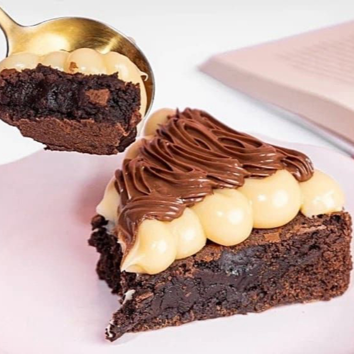 Irresistível fatia feita com uma base de brownie bem chocolatudo, coberta com uma generosa camada de mousse de Ninho cremosa e finalizada com uma camada da deliciosa Nutella Original. Peso Aproximado de 170g.