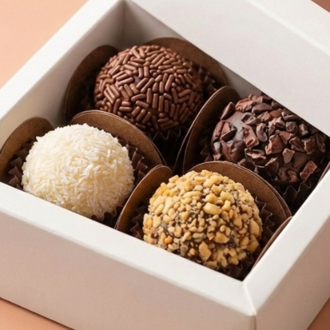 Um Docinho é sempre bem vindo, não é mesmo ? Aqui vão 4 unidades deliciosas, com sabores sortidos entre brigadeiro, Ninho, limão, coco, 2 amores. Caso não goste de algum dos sabores, pode colocar na observação