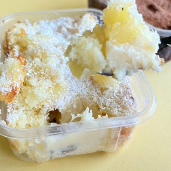 Uma massa nuvem encharcada em calda de leite, revelando pedaços suculentos de abacaxi artesanal que explodem em frescor. O contraste entre a cremosidade do coco e a acidez doce da fruta cria uma experiência ultragelada e irresistível. É o equilíbrio perfeito: leve, molhadinho e finalizado com uma chuva de coco ralado que derrete na boca. Peso Aproximado de 130g.