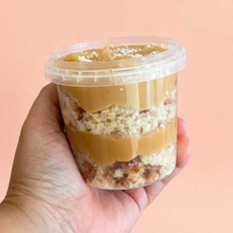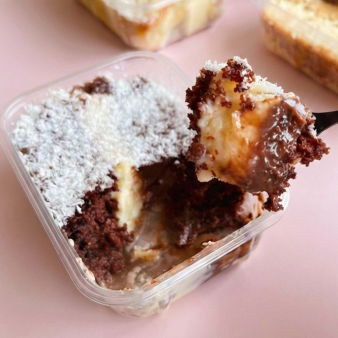 A combinação clássica que nunca falha! Camadas generosas de massa branca ultra molhadinha, intercaladas com um recheio cremoso de coco fresquinho e o toque aveludado do nosso doce de leite artesanal. Geladinho, equilibrado e feito para derreter na boca a cada colherada. Peso Aproximado de 230g.