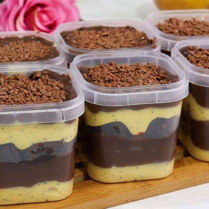 3 Bolos De Pote Sabores, 1 Brigadeiro, 1 Prestigio E 1 De Maracuja