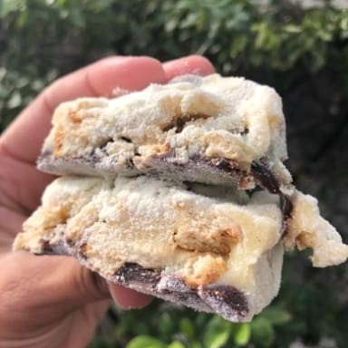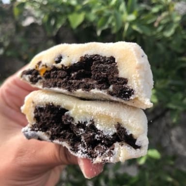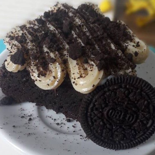 Um saboroso brownie com massa de chocolate nobre, bem molhadinha e casquinha crocante. De cobertura um delicioso e cremoso brigadeiro de chocolate branco com Oreo, finalizado com farofinha crocante do biscoito.