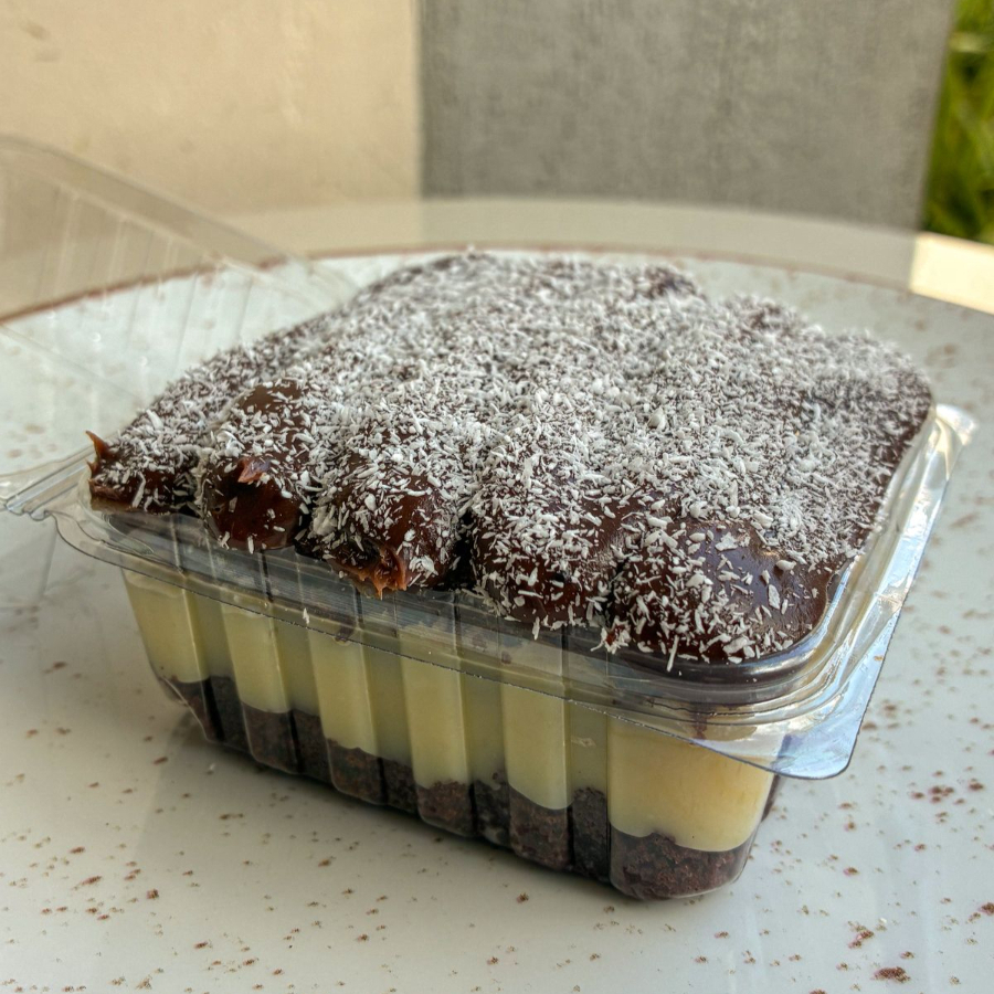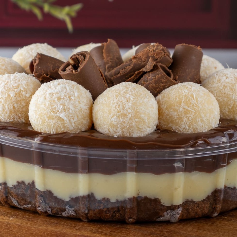 Uma combinação perfeita de sabores clássicos! Nossa sobremesa, preparada na hora e montada na travessa, reúne bolo de chocolate, brigadeiro cremoso de coco, brigadeiro cremoso de chocolate, beijinhos e raspas de chocolate. Ideal para o almoço de domingo ou qualquer celebração especial.