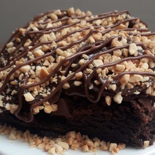 Um saboroso brownie de chocolate nobre, bem molhadinho e casquinha crocante. De cobertura um delicioso e cremoso brigadeiro de chocolate nobre, finalizado com amendoim triturado e Nutella.