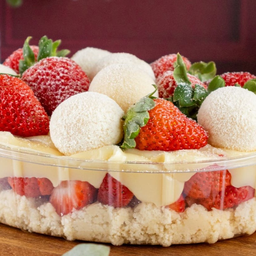A sobremesa mais pedida, agora com um toque especial! Bolo de baunilha molhadinho, brigadeiro de Leite Ninho cremoso e morangos fresquinhos, tudo montado em camadas na travessa, perfeita para compartilhar com a família.