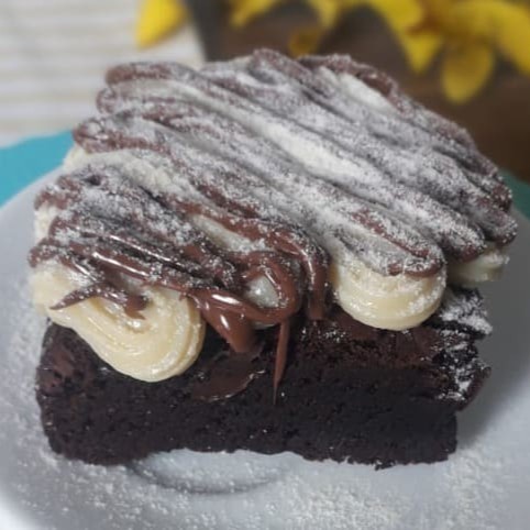 Um saboroso brownie de chocolate nobre, bem molhadinho e casquinha crocante. De cobertura um delicioso e cremoso brigadeiro de chocolate nobre.
