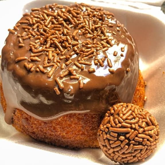Delicioso mini bolo vulcão de massa caseira de cenoura, bem fofinho, com cobertura de brigadeiro cremoso de chocolate nobre finalizado com granulado. Atenção: Porção Individual Aproximadamente 250g.