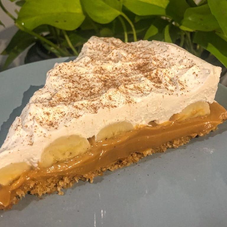 Deliciosa fatia da torta banoffe , com base de biscoito amanteigado , doce de leite levinho , banana fresquinha e nosso delicioso chantininho , finalizado com canela em pó.
