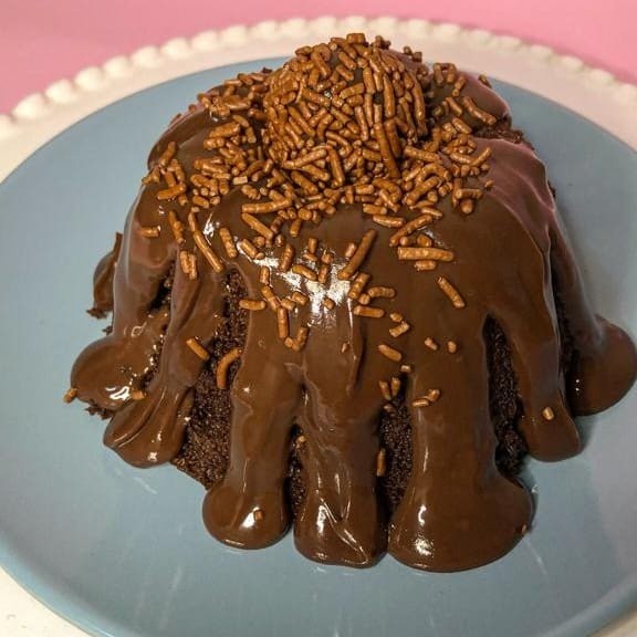 Delicioso mini bolo vulcão de massa caseira de chocolate, bem fofinho, com cobertura de brigadeiro cremoso de chocolate nobre finalizado com granulado. Atenção: Porção Individual Aproximadamente 250g.