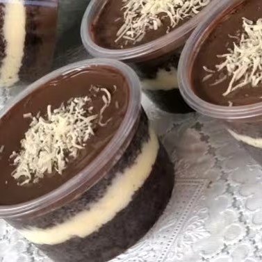 Biscoito champgne,creme de cocô creme chocolate finalizado com Coco ralado