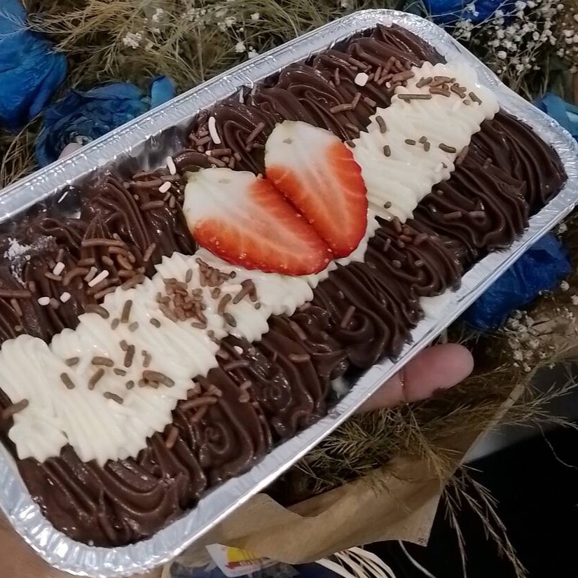 Se chama dois amores porque vai com um delicioso creme de chocolate e creme chocolate branco Com pedaços de morangos frescos.