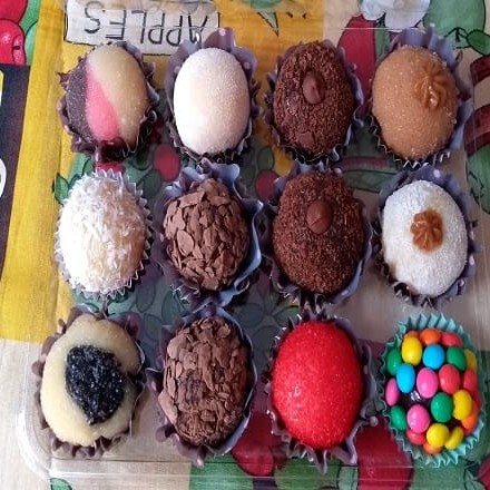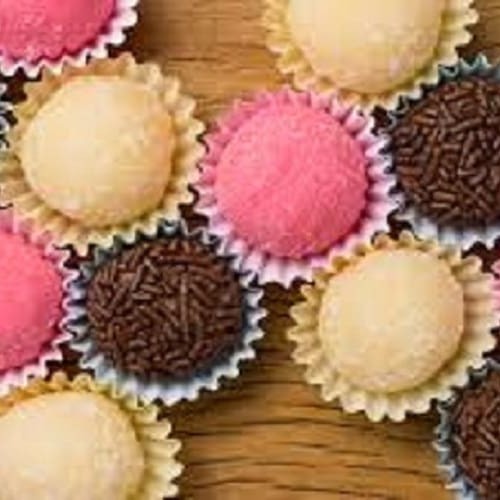 150 unidades - brigadeiro ao leite, brigadeiro branco, bicho de pé, ele e ela, beijinho. Com 12 horas de preparo.