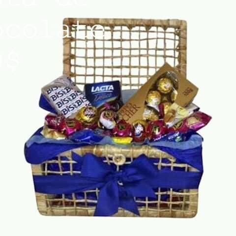 Cesta Quadrada De Palha, Com Ferriro Rocher, Barra De Chocolate Lacta, Bis, Caixas De Bombom Nestler, Caixa De Bombom Garoto