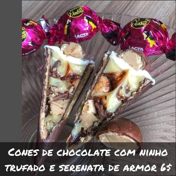 Canudos de biscoito,tubes crocates com trufado de Ninho, ou brigadeiro com Ninho. So brigadeiro,ou Ninho com nutela.