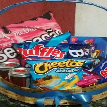 Com 1 Almofada ( Sortidas) 2 Coca Cola , Bis, Caixa De Bombom,Rufles, Cheetos E Biscoito