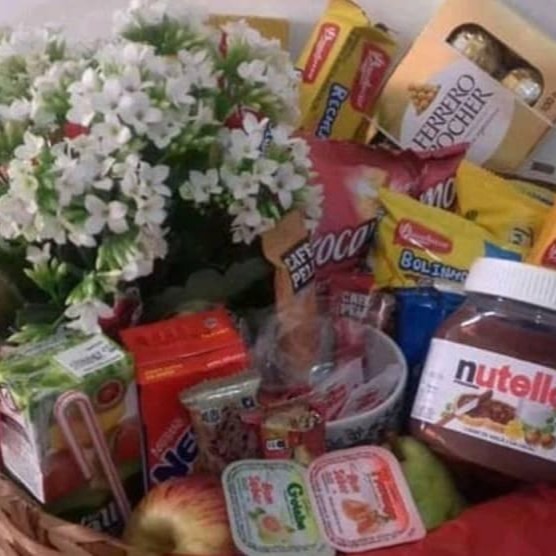 Linda Cesta redonda 35cm Com 25 Itens. Torradas, Weifer, Goiabinha, Pao De Mel, Biscoito Recheado,Maisena, Bolinhos, (obs: chocotone e panetone deprndem da epoca)