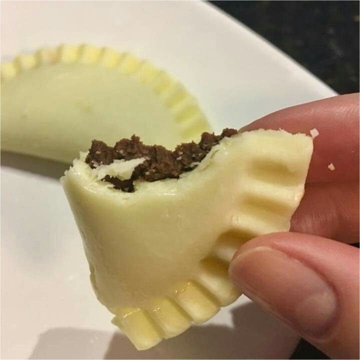 Massa de Ninho com recheio de brigadeiro ao leite.