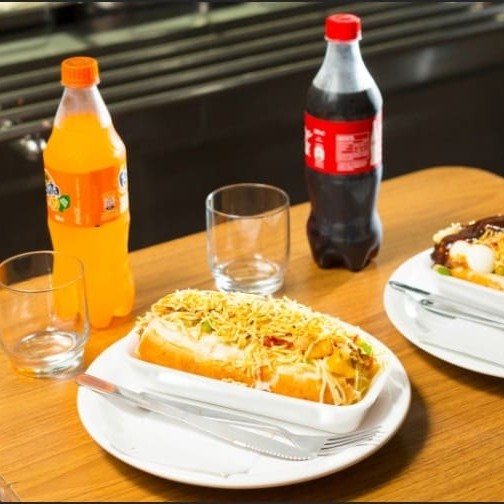 Com Delicioso,´Molho Da Casa, Salsicha Milho E Batata. Mais Garrafinha De Refrigerante Guarana Ou Pepis
