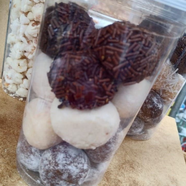 Copo de 400 ml com 15 brigadeiro sortidos, brigadeiro ao leite, coco, cajuzinho, Ninho ou ele e ela.