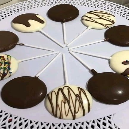 Chocolate ao leite com recheio abacaxi fruta e Ninho. 9 cm . Feitas na hora