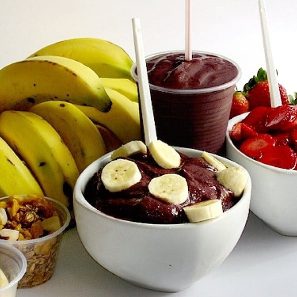 Com Puro Acai, Banana Prata , Leite Em Po, Granola E Morango