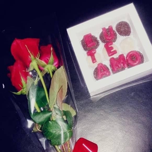 Caixa 9 Bombom Eu Te Amo E 3 Botoes De Rosa
