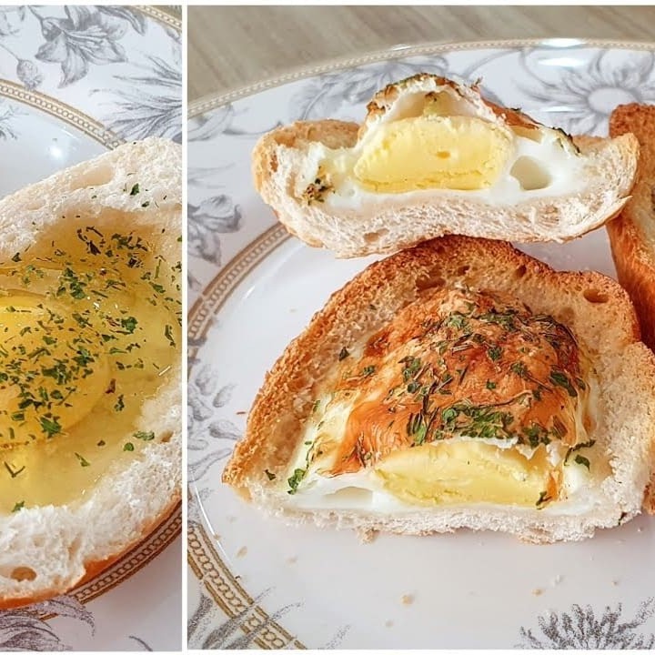 Poa frances 1 banda com 1 ovo e uma fatia de mussarella feito na hora ( cheiro verde se preferir,