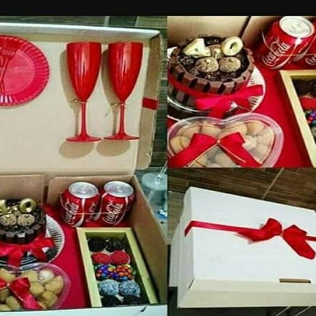 Com Taças, Refrigerante, Bolo 2 Pessoa, Coraçao De Salgados, Caixa De Docinho. Caixa 40x40 Decorada Tempo Em Media De Preparo 4 Horas