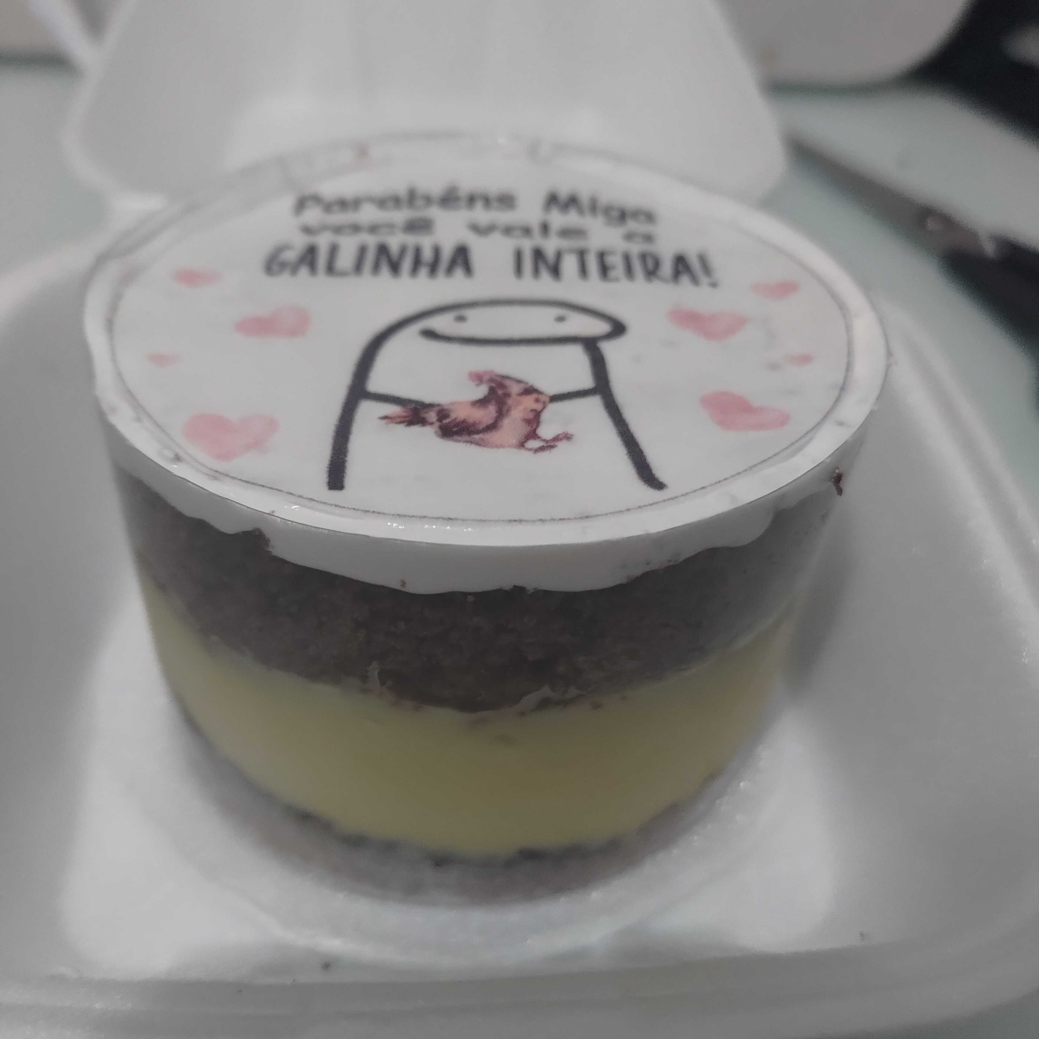 Bolo feito com massa pão de lo, com apenas uma camada de recheio. Temos na opção chocolate 50,% cacau ou ninho
