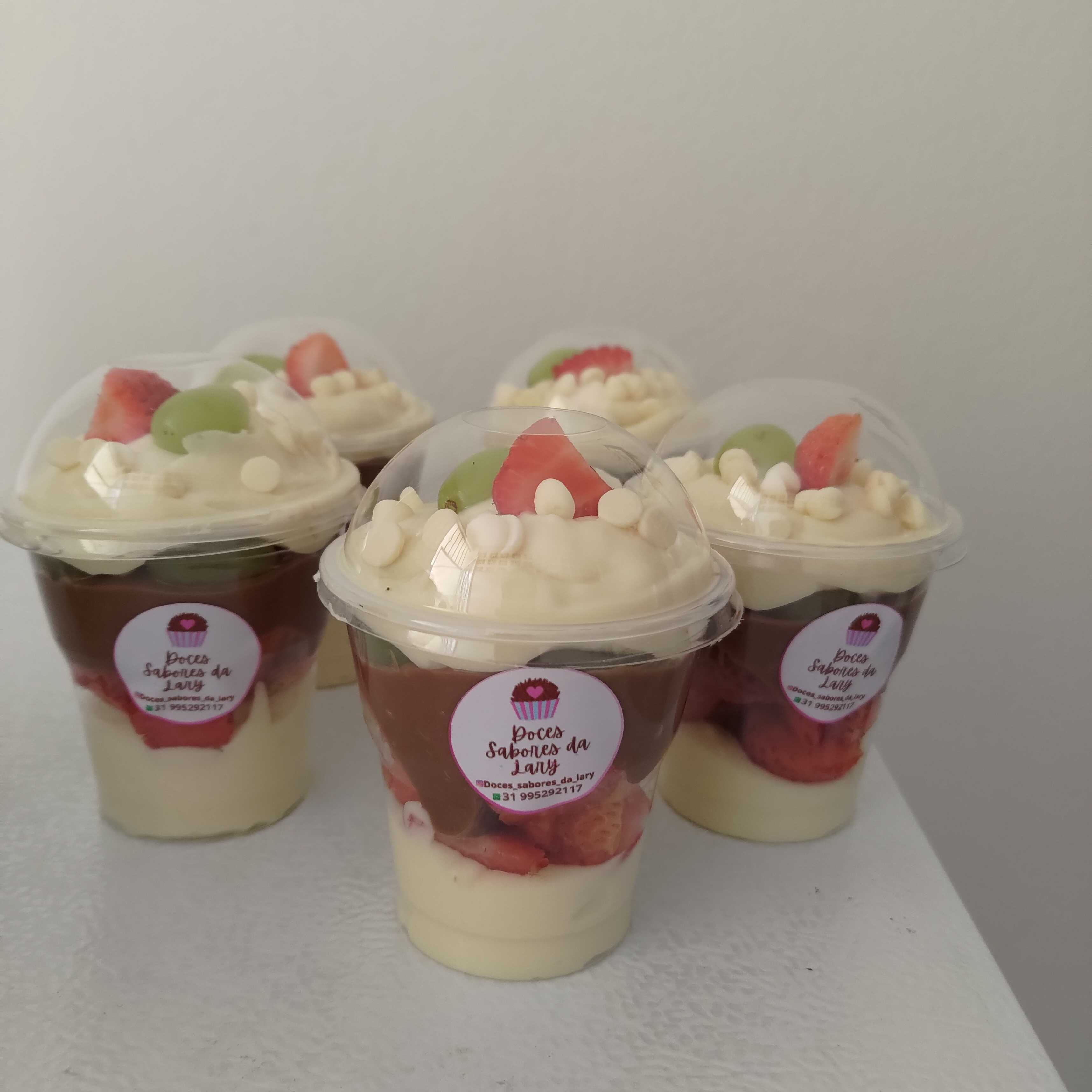 Creme de ninho com morango, creme de chocolate e uvas veedes