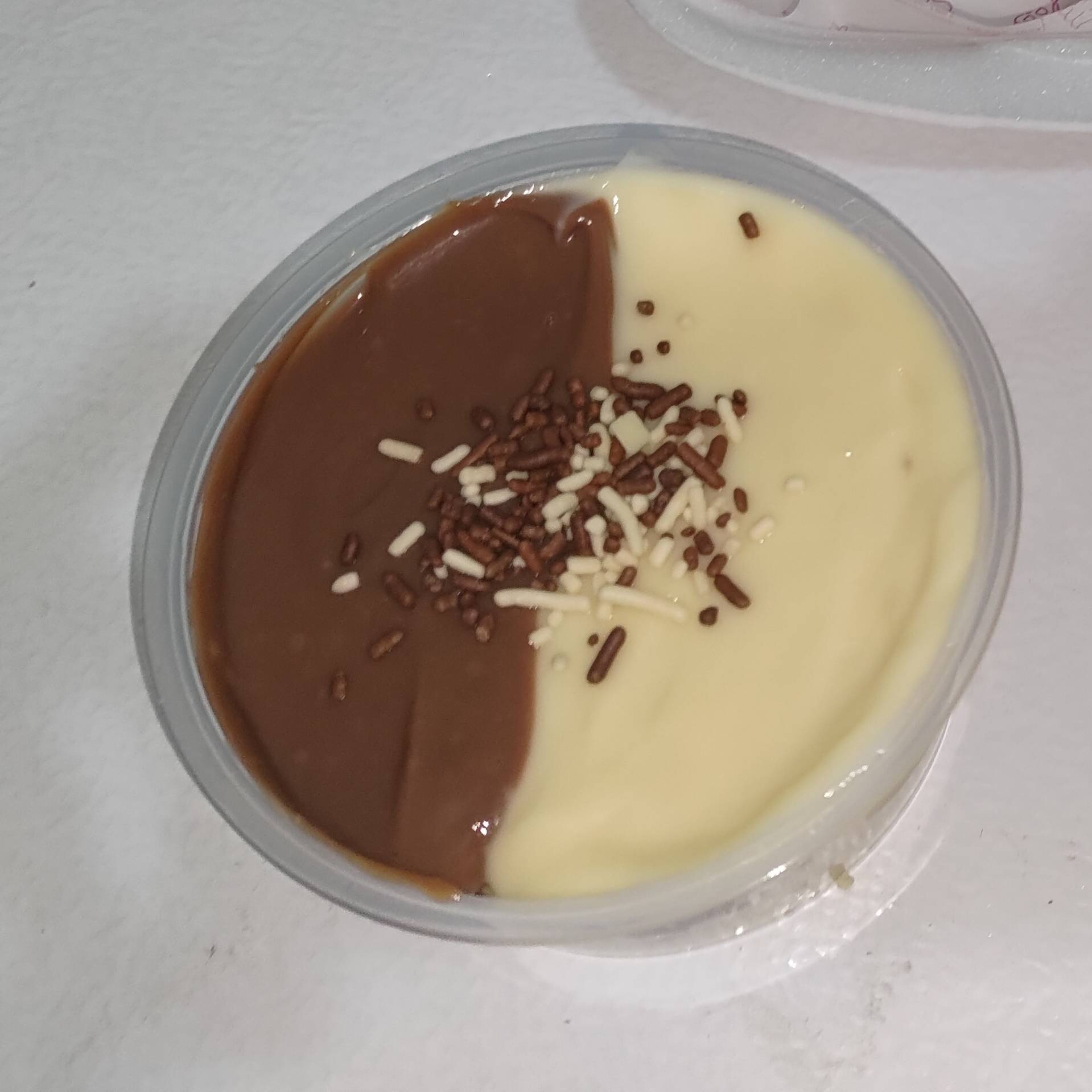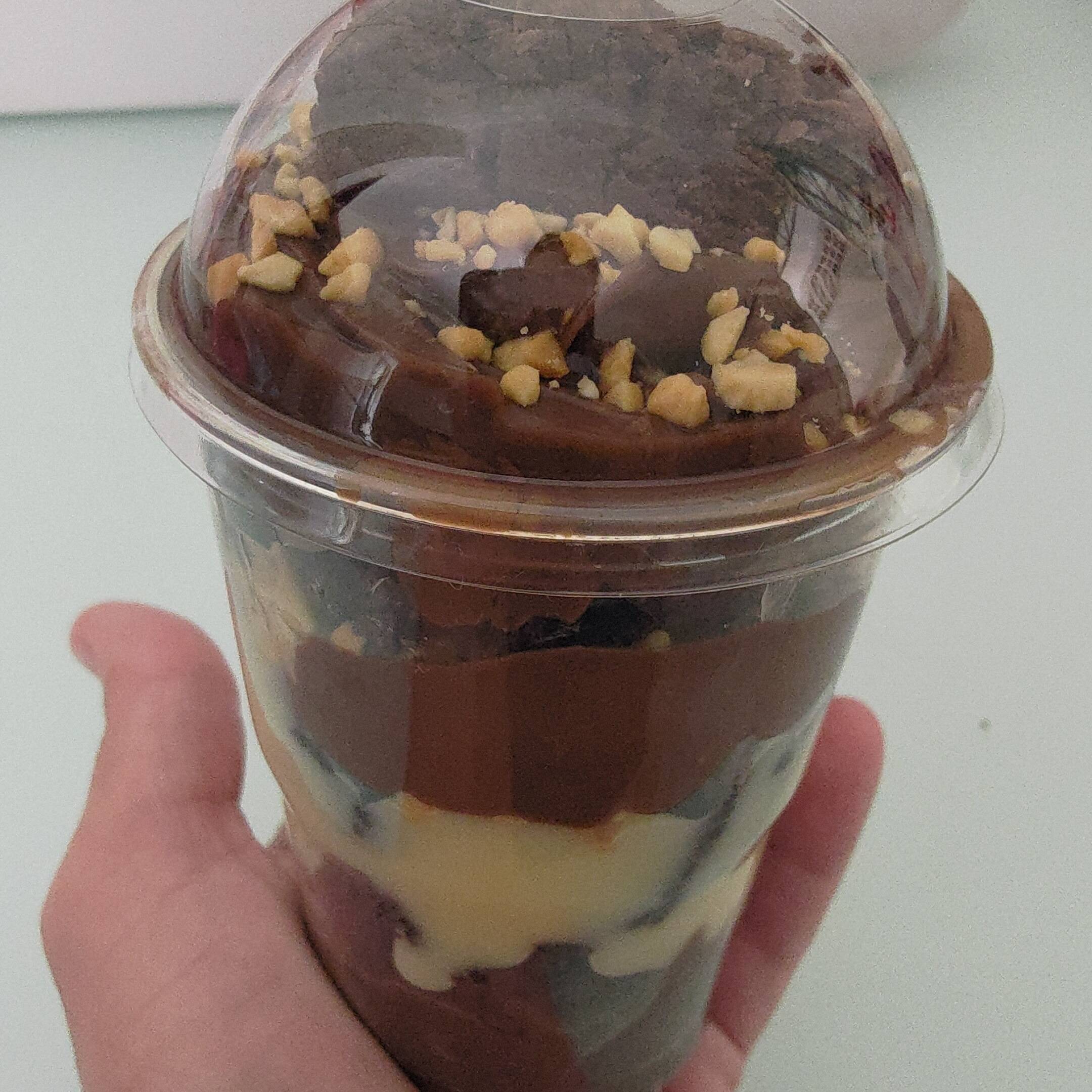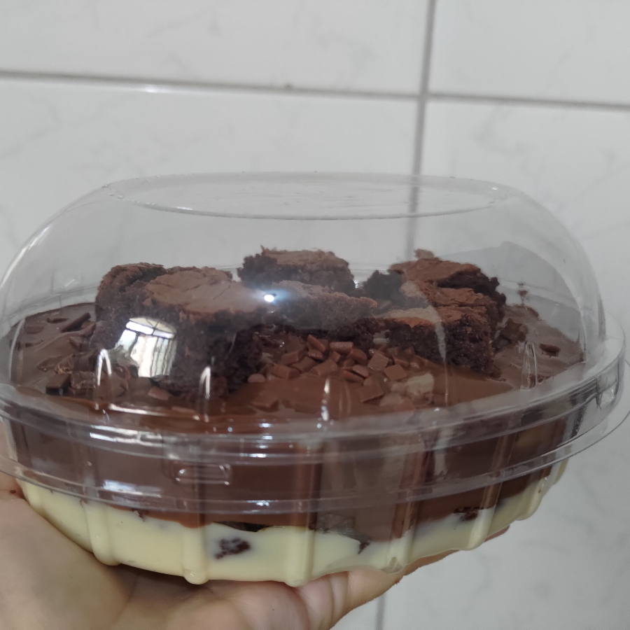 Camadas de creme de ninho com chocolate 50% cacau ,pedaços de brownie