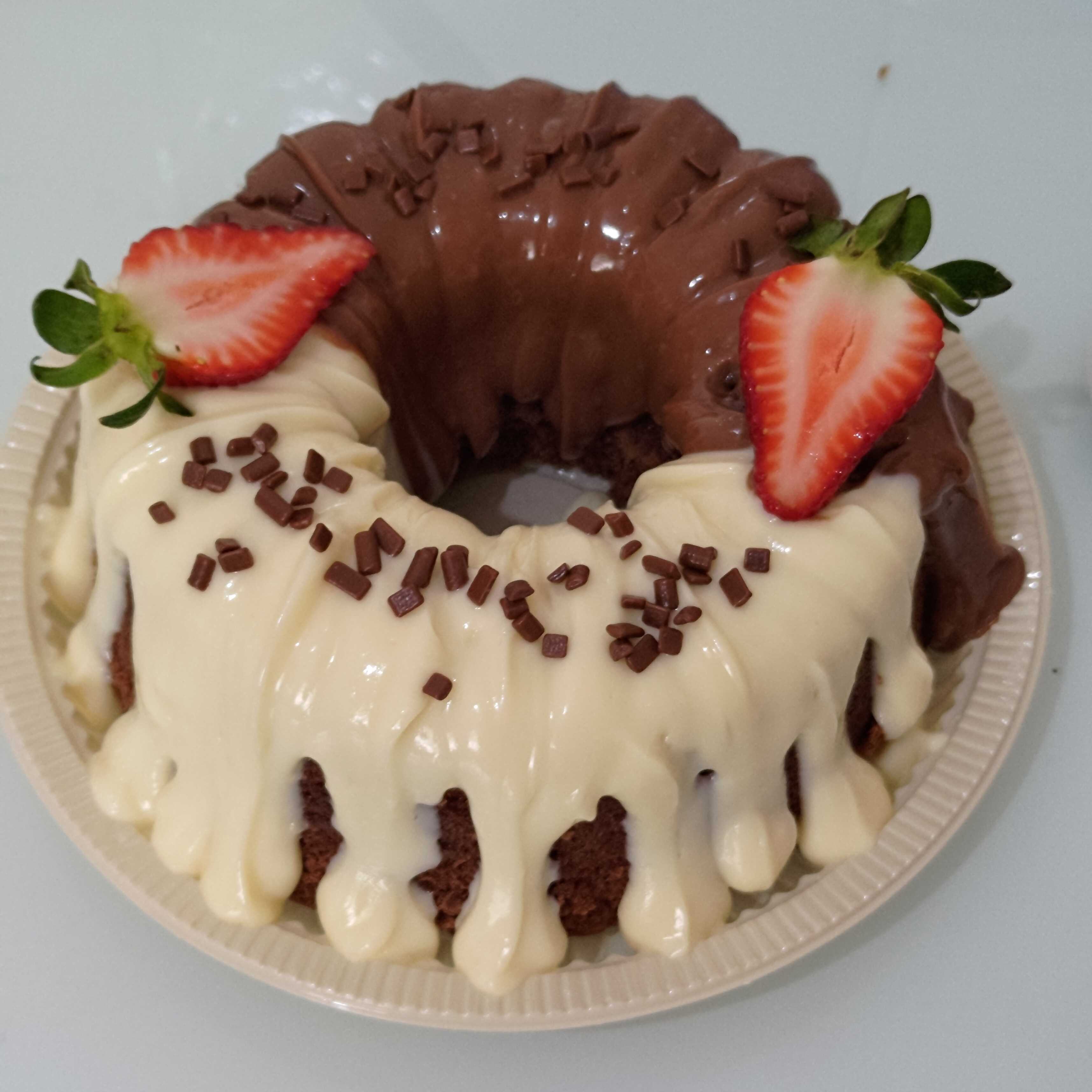 Massa de chocolate 50% cacau molhadinha com recheio de coco natural e chocolate