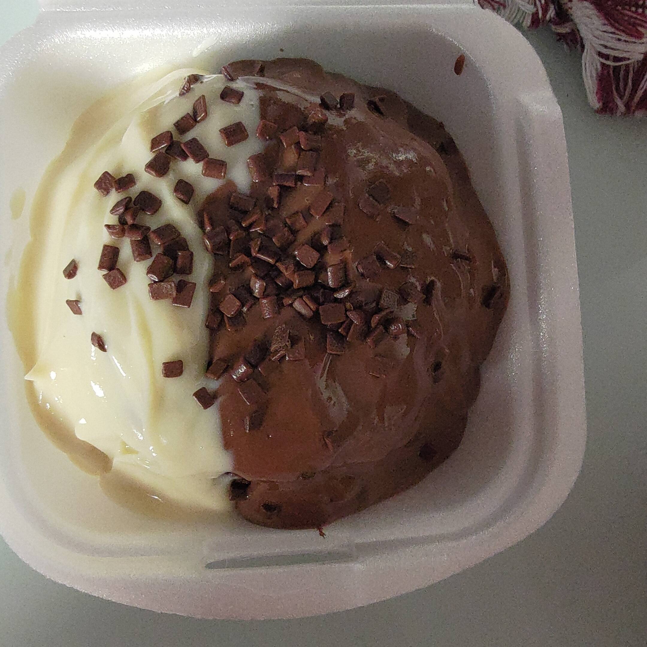 Massa de chocolate artesanal com creme de coco natural e chocolate)