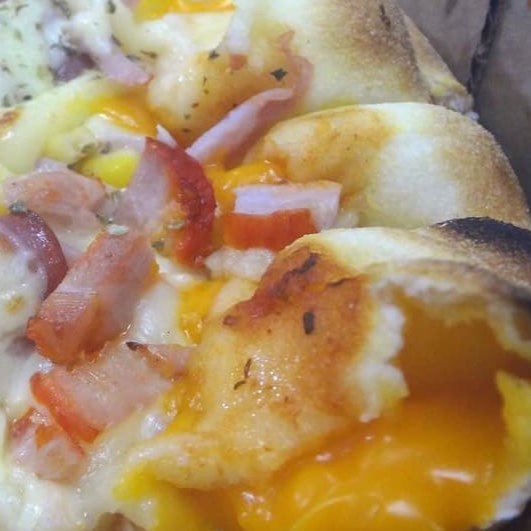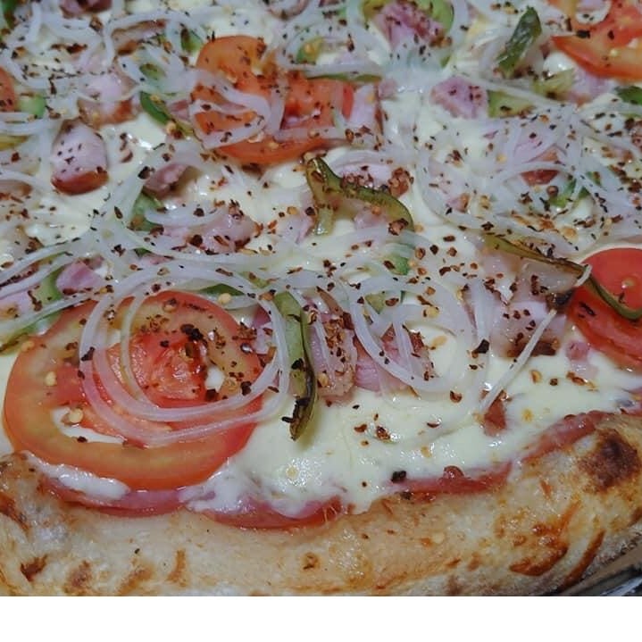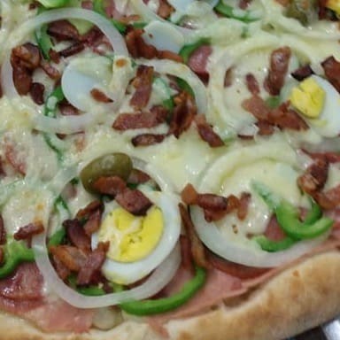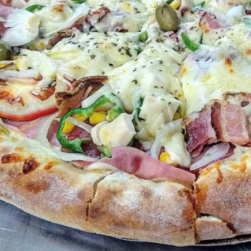 Generosas fatias de presunto, mussarela, calabresa, bacon, pimentão tomate e azeitona