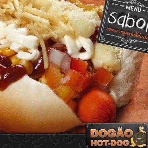 Desfrute de um 'Dogão' grandioso e saboroso, que traz a união perfeita de duas suculentas salsichas da marca Perdigão, enriquecidas por um Catupiry ultra cremoso. Este 'Hot Dog - Cachorro Quente' é generosamente servido em um pão macio e fresco, coberto com um molho irresistível e uma generosa camada de mussarela derretida. Para adicionar um toque de frescor e textura, é coroado com um vinagrete balanceado, milho doce, batata palha crocante e ovo de codorna. Finalizado com passas para um leve toque de doçura. Este prato é uma experiência culinária única que promete agradar o paladar.