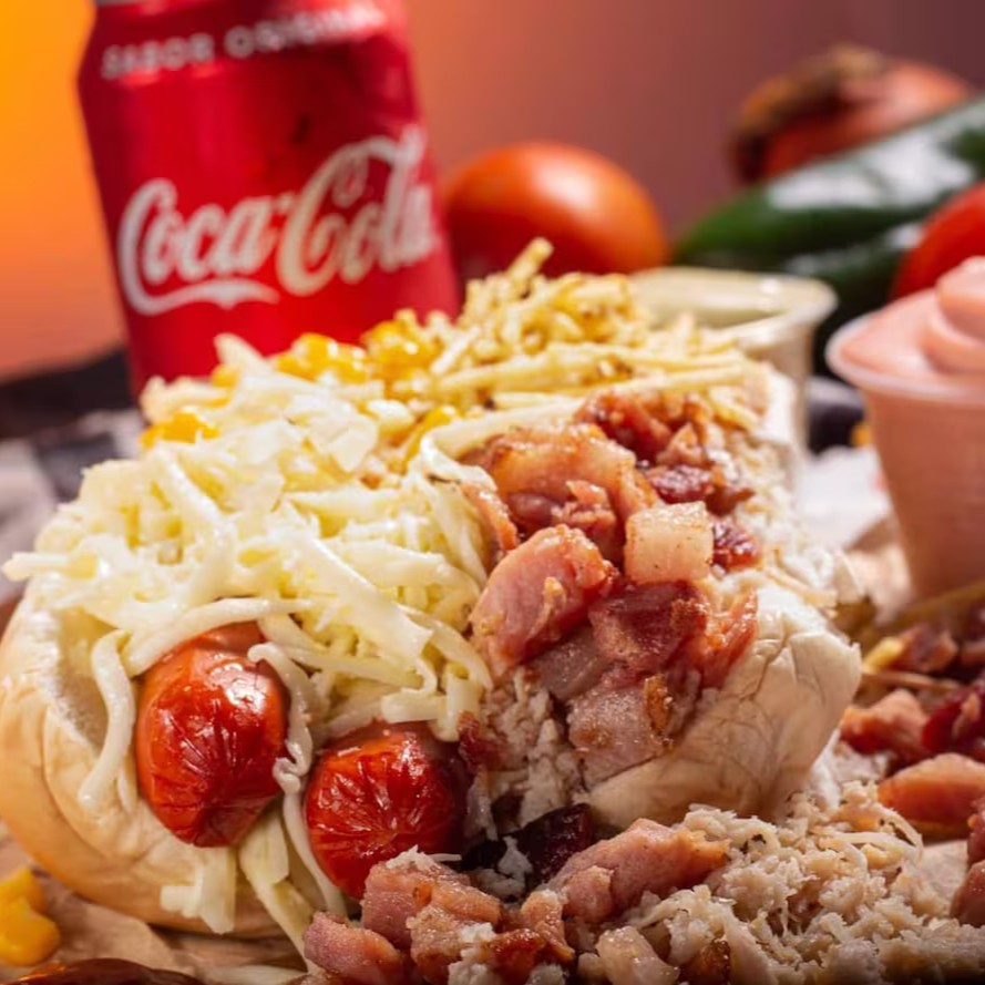 Mais de 8 ingredientes em um hot dog saboroso. Mais 3 coca 200 ml Grátis molho verde