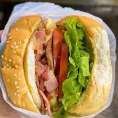 Um x-bacon é um sanduíche clássico e irresistível para os amantes de bacon. É composto por um hambúrguer suculento de carne bovina, grelhado no ponto desejado, e colocado entre duas fatias de pão de hambúrguer macio e levemente tostado. Além disso, é adicionado uma generosa quantidade de bacon crocante, que traz um sabor defumado e salgado ao sanduíche. Para completar, são adicionados ingredientes como queijo derretido, alface fresca, tomate fatiado, e molho especial e batata palha. A combinação do hambúrguer suculento, o bacon crocante e os demais ingredientes cria uma experiência de sabor intensa e satisfatória