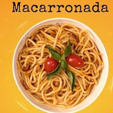 Espague-tudo: espaguete, molho à bolonhesa, mussarela, ovo frito, bacon, Catupiry, batata palha, milho e cebolinha.