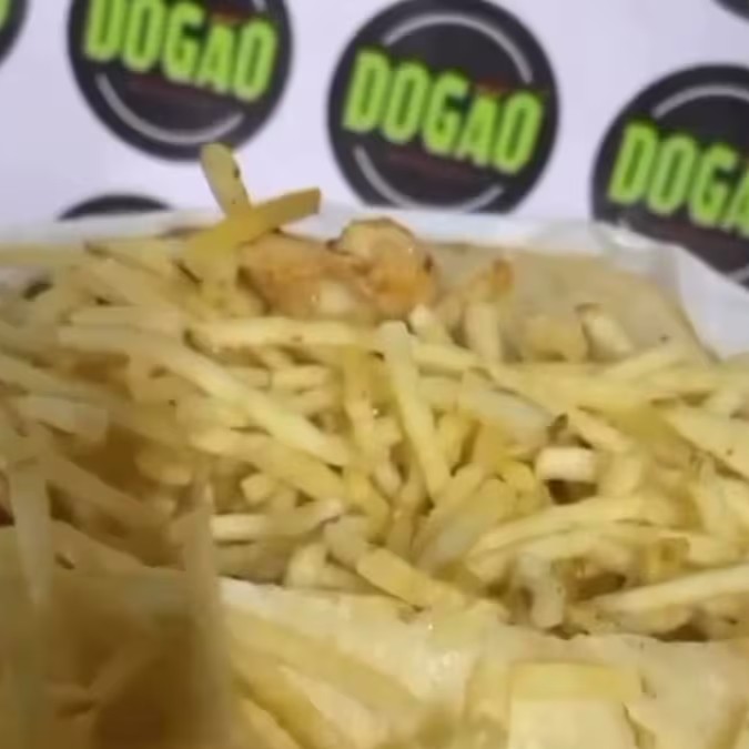 Pão Brioche Arytza, molho dogao do chef, suculento blend 150 g cada, queijo cheddar polenguini, fatias de bacon crocante. Acompanha fritas sequinhas.
