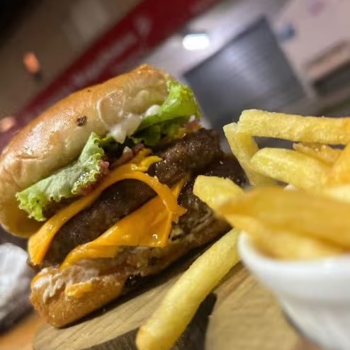 Delicioso smash 150g de pura carne bovina, queijo cheddar, queijo Mussarela, bacon molho defumado gourmet.
