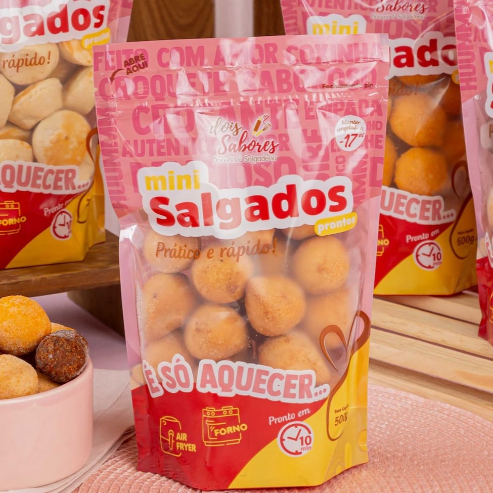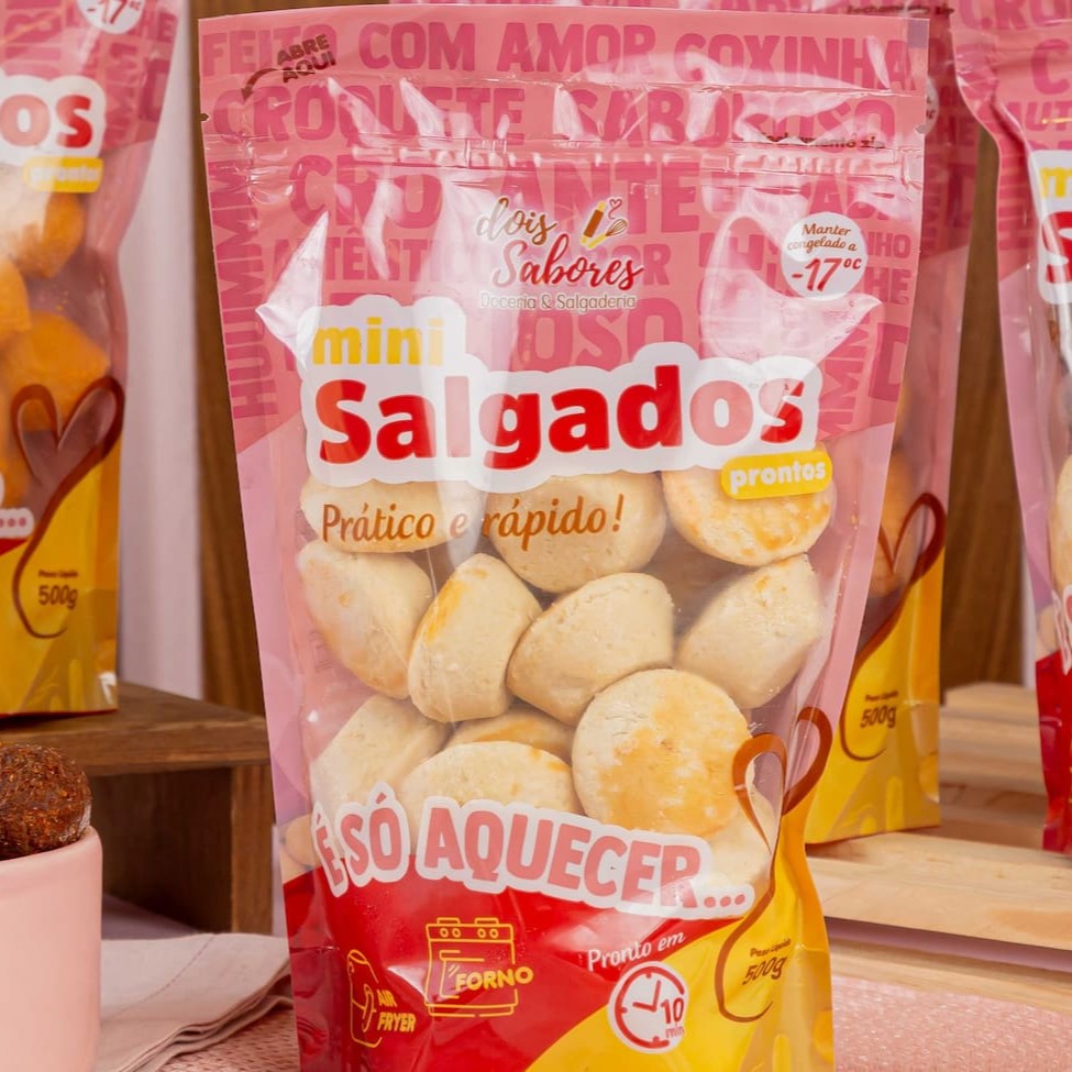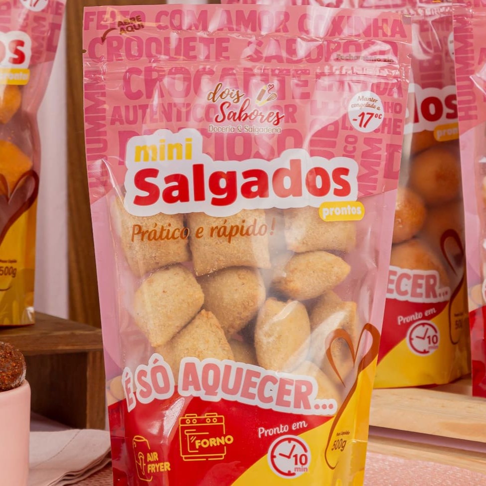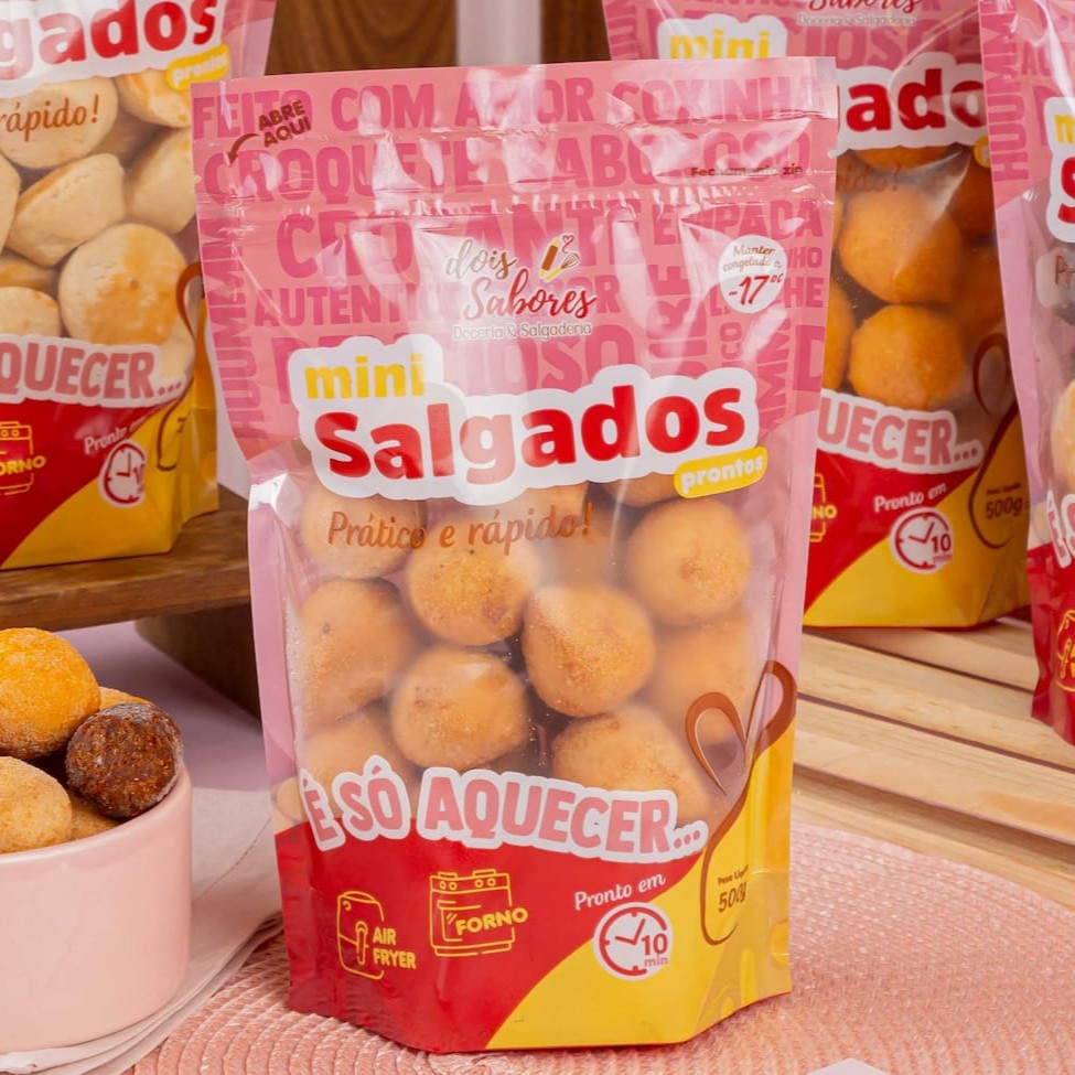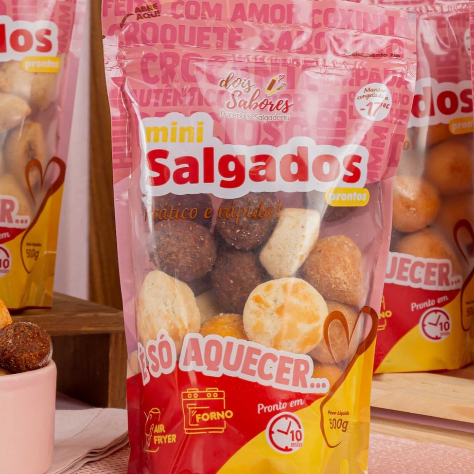 Uma seleção irresistível de mini salgados mistos, com sabores variados, já fritos e congelados. Ficam prontos em apenas 10 minutos na airfryer ou no forno, proporcionando praticidade e rapidez no preparo. Ideais para ter sempre no congelador, perfeitos para um lanche rápido no Dia a Dia ou para servir como petisco quando recebe visitas. Pacote de 500g, contendo aproximadamente 25 unidades.