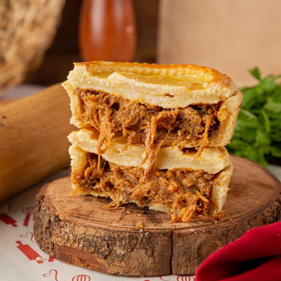 Deliciosa torta com massa caseira, crocante e sequinha, recheado com carne de panela cozida, cremosa e desmanchando de gostoso!