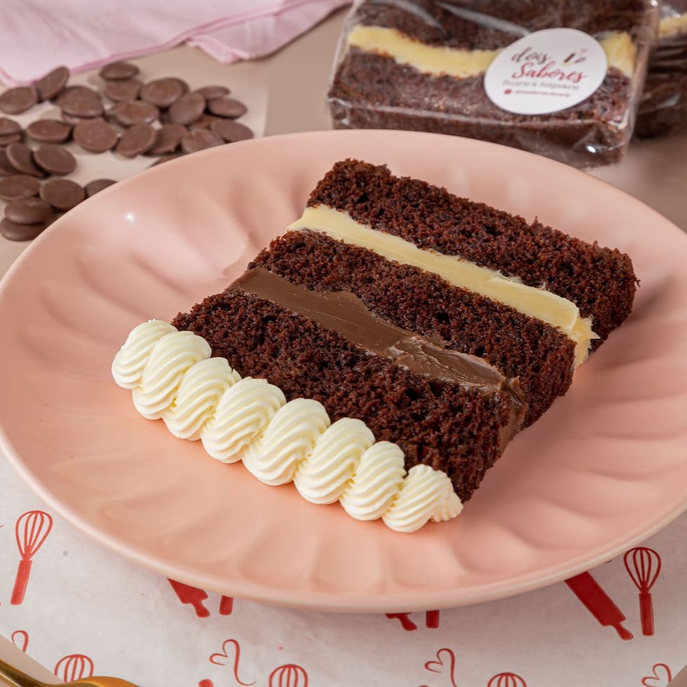 Deliciosa fatia do nosso bolo festivo. Massa fofinha, recheio bem cremoso de brigadeiro de cacau e brigadeiro de Ninho, coberto com nosso famoso buttercream abrasileirado.