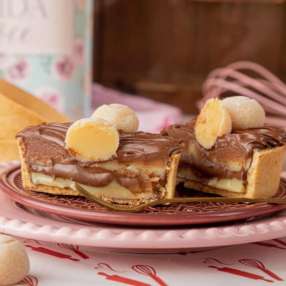 Delicioso Tartelette com uma Massa Amanteigada e Crocante ,bem Recheada com Brigadeiro de Leite Ninho e generosas Camadas de Nutella, finalizado com Brigadeiro enrolado de Ninho.