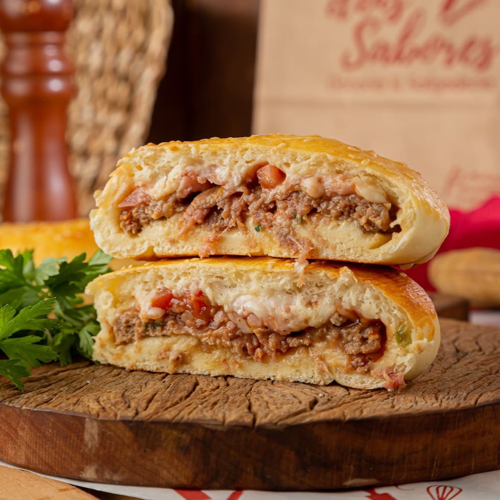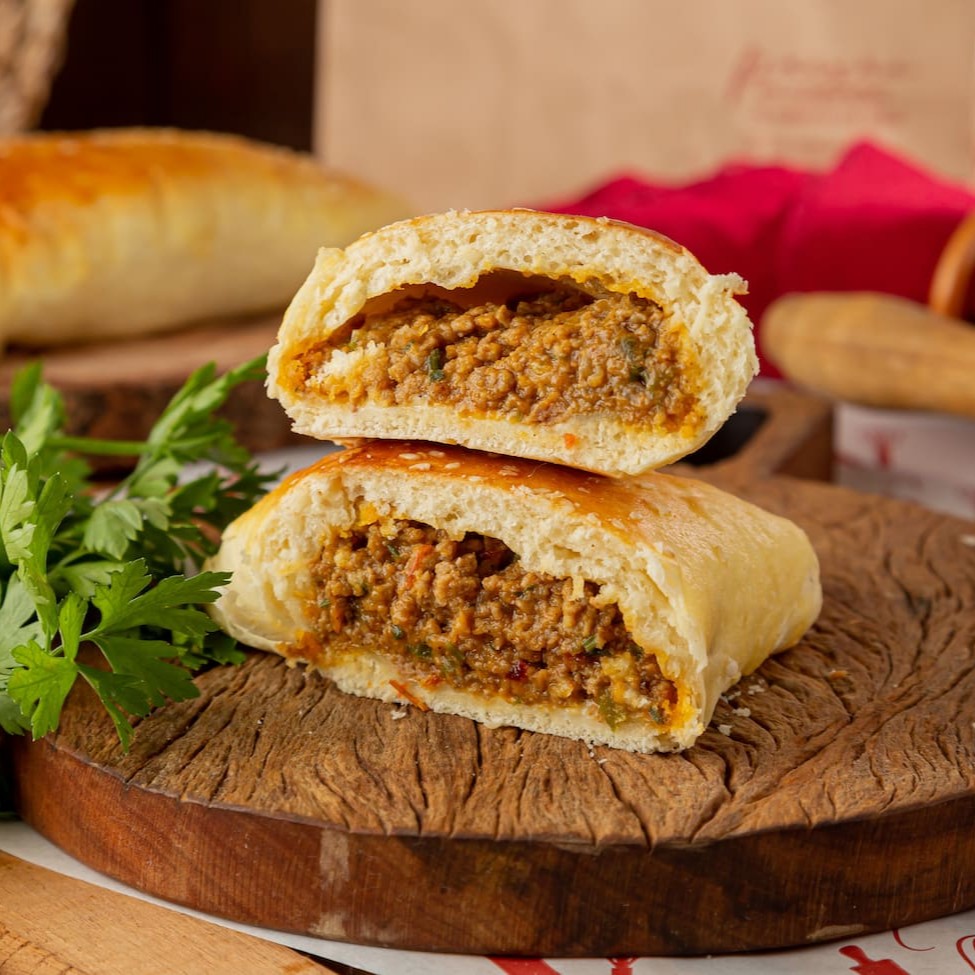 Deliciosa esfirra com massa artesanal e fofinha, recheada com uma suculenta carne refogada no alho e cebola.