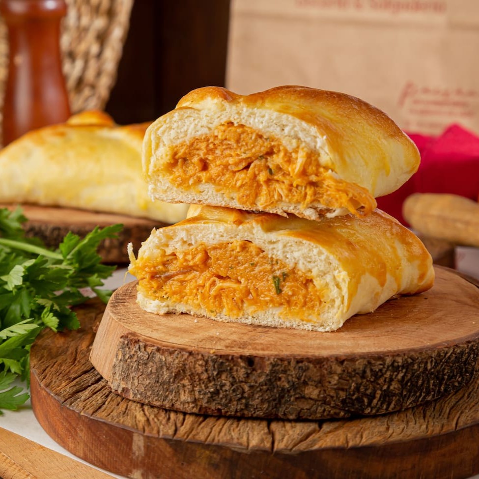 Deliciosa esfirra com massa artesanal e fofinha recheada com frango cremoso e suculento!