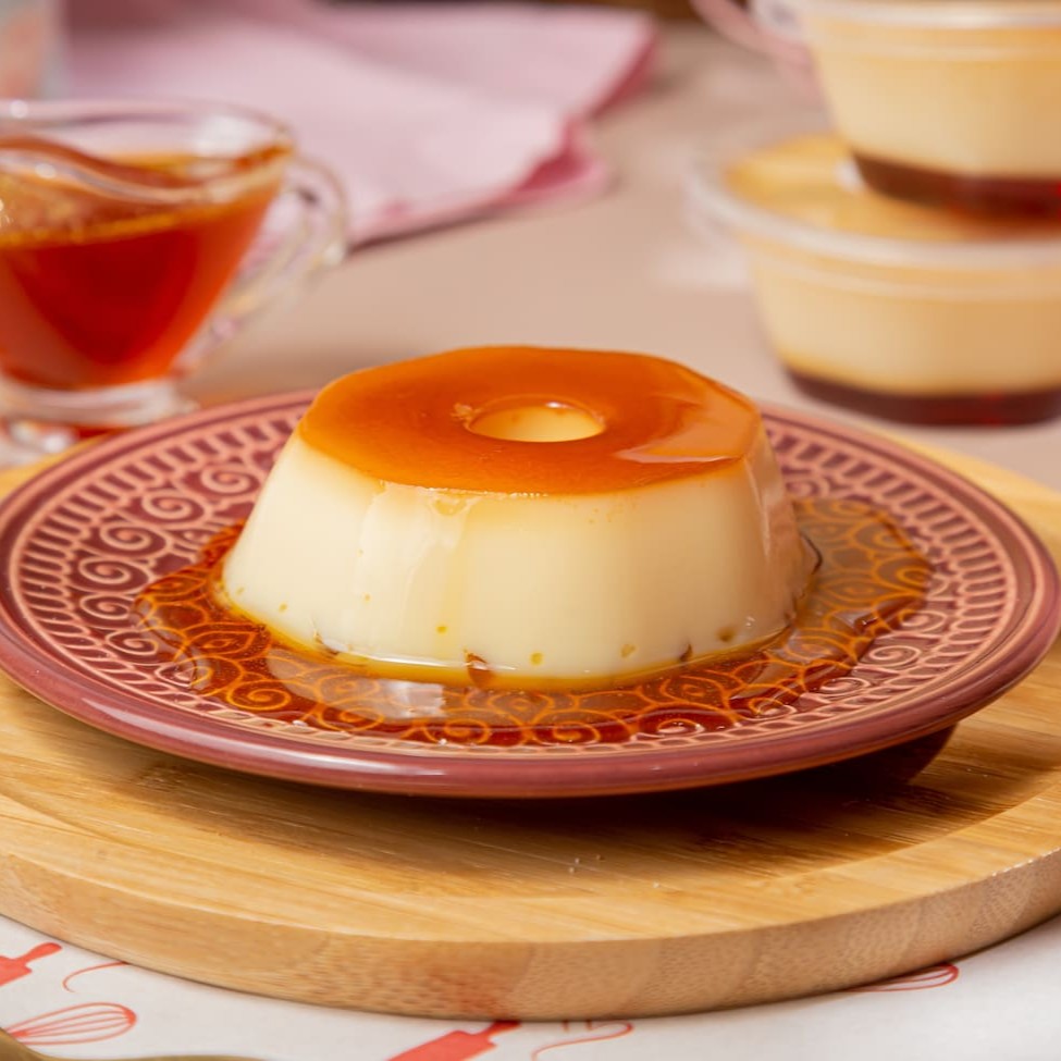 Pudim de leite condensado, super cremoso, lisinho e fofinho, com o toque da calda de caramelo.