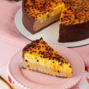 Base de biscoito de chocolate amanteigado, mousse de maracujá e mousse de chocolate, finalizado com geleia artesanal de maracujá (com sementes). Combinação perfeita para um paladar mais azedinho!!!