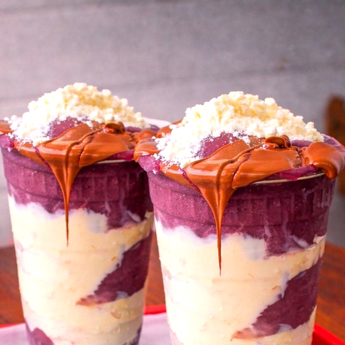 Açaí, leite ninho, creme de avelã, leite condensado, e leite em pó