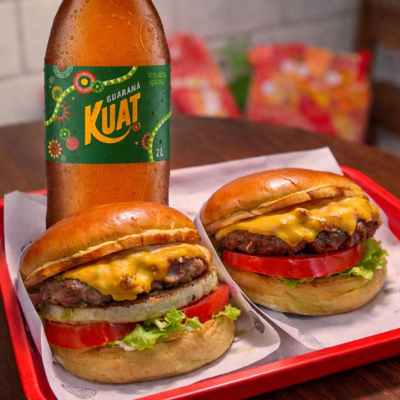 Combo 2 Hambúrguer + Refrigerante Kuat 2l 2 Carnes 120g Cada Mais Cheddar Bacon